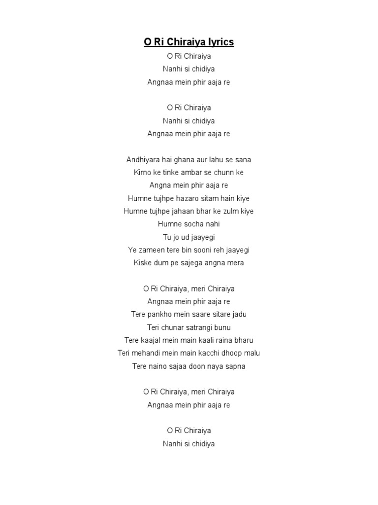 O Ri Chiraiya Lyrics Golectures Online Lectures